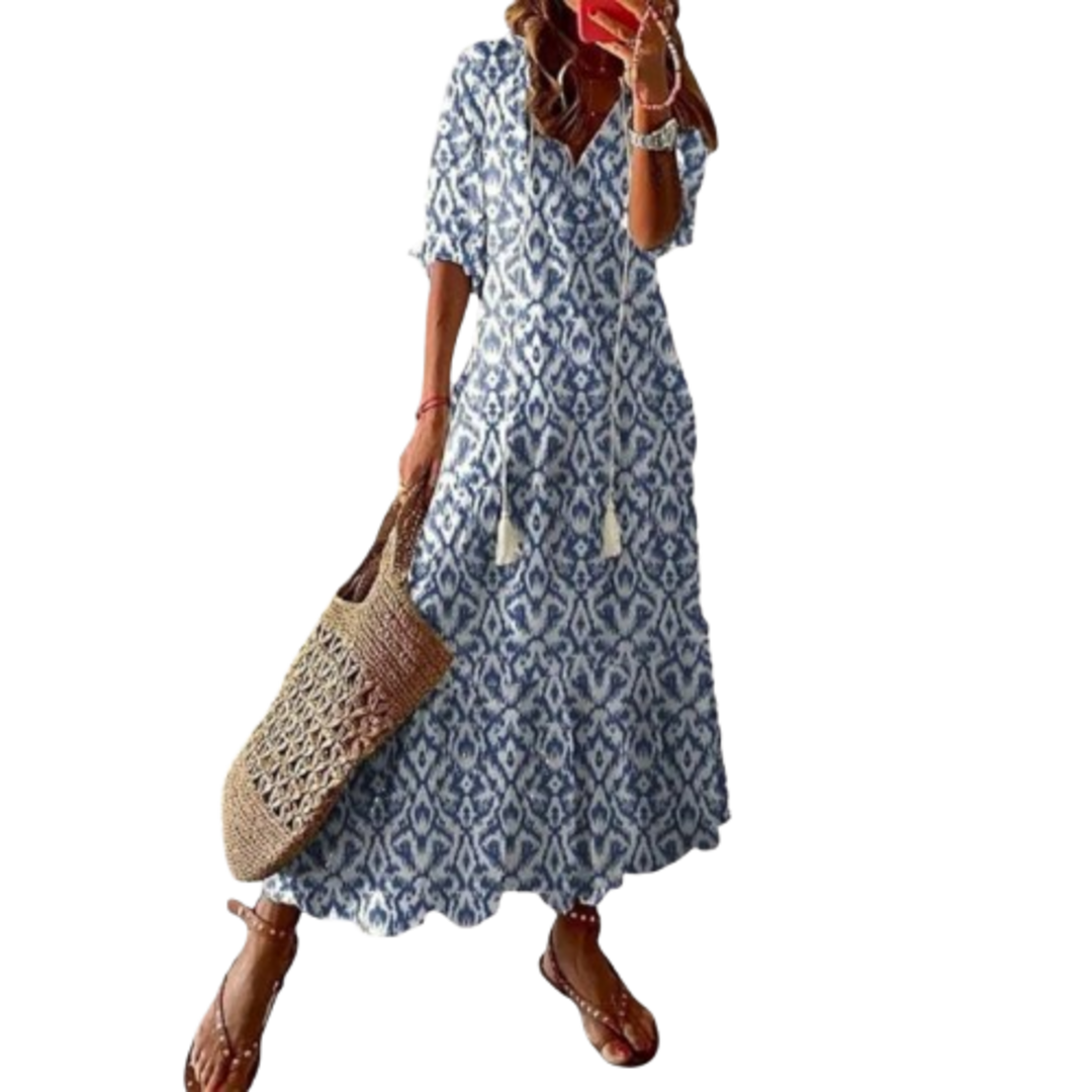 • Nadčasový design: Bohémský potisk a klasická silueta – nezbytný kousek do každého šatníku.